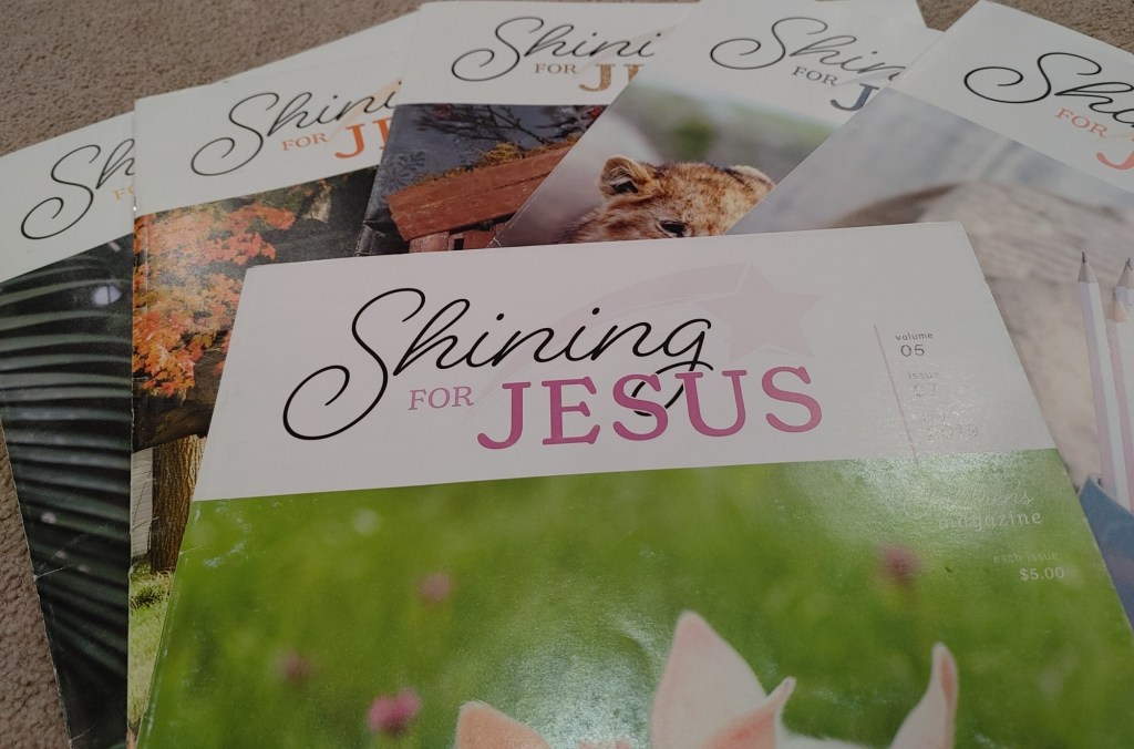 Shining For Jesus (http://www.shiningforjesus.com/) is the children’s magazine for which I write monthly stories. I write the Northern Lights Storytime column.