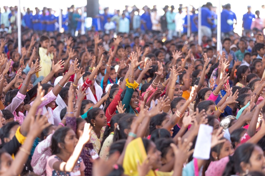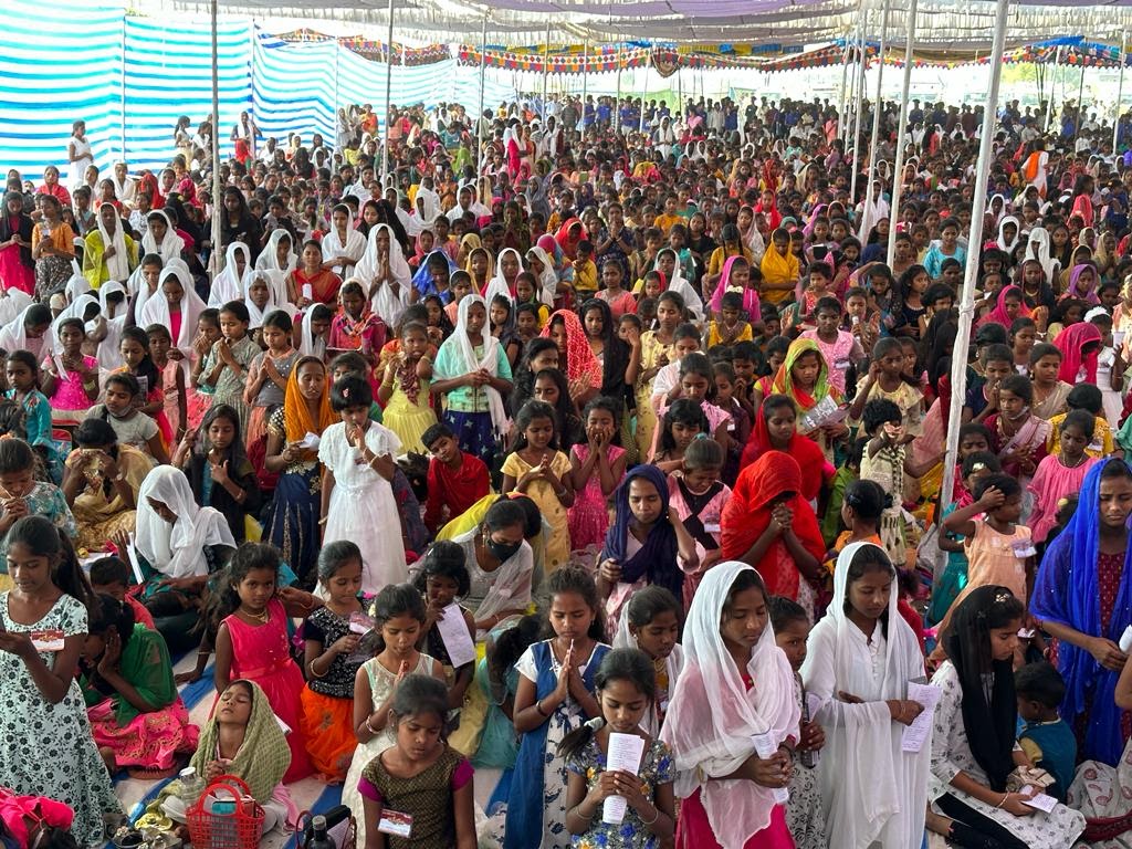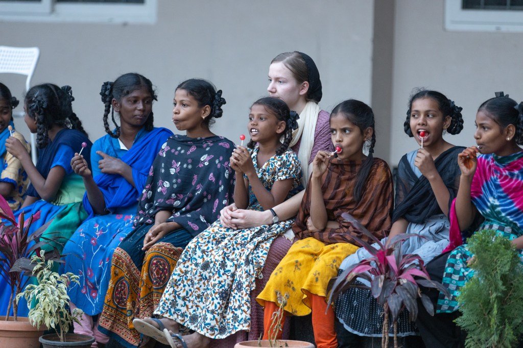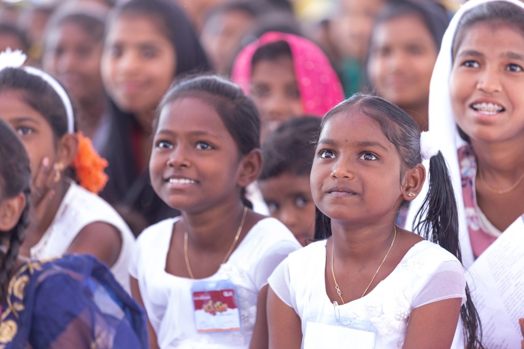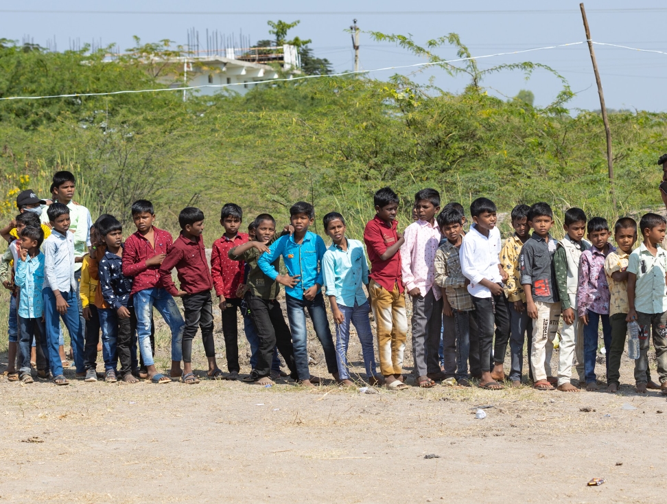 Black-haired and brown-skinned, all wrapped in bright colors,