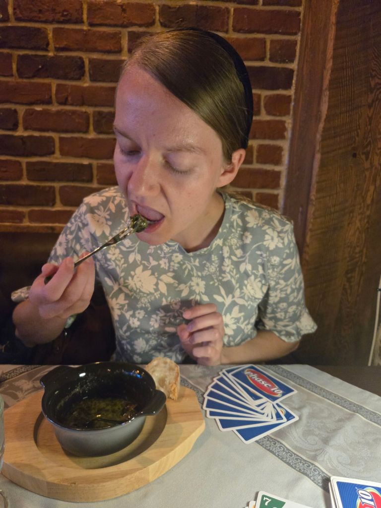 The sisters indulged in creme de glace in a cafe, dared to order crepes on the street, munched escargots and pasta, and raided the bakeries for quiche, croissants, and all sorts of French pastries. They browsed a tiny grocery store that reminded them of home, explored a really cool museum, and hunted down some postcards and stamps to send home.