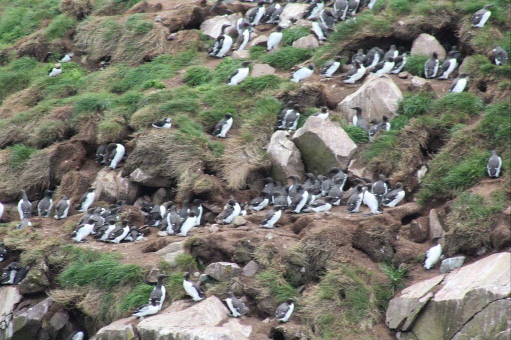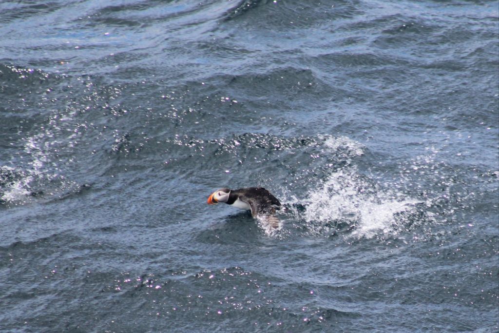 So they did. They took a boat into Witless Bay where the rolling waves tossed them up and down like an amusement ride. They clutched to their skirts, the railing, and their binoculars as they watched thousands of murres and puffins on the islands. Saltwater sprayed over them and the sun baked their faces.
